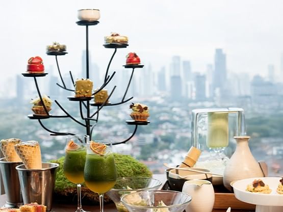 Unwind and socialize with family and friends in the Living Room. Enjoy a refined à la minute Afternoon Tea experience while taking in our signature view of Indonesia’s National Monument.